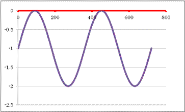 このグラフは横軸が正弦波のちょうど真ん中に位置していますので、気分の明るい状態と暗い状態とが半々になっており、双極的な気分の揺れが生じていることがわかりやすい例です。